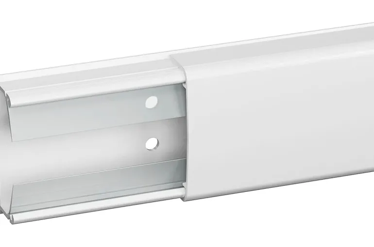 Minikanavassa on sisäänrakennettu pehmeä kaapelipidike ja vain yksi lokero. Esirei’itetyt reiät 100 mm välein.
