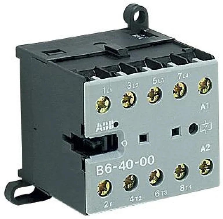 Sisäänrakennettu DIN-kiskon kannatin, soveltuu erityisesti sähkölämmityskontaktoriksi. B6-30 kolmella päänavalla ja sulkevalla (10) tai katkaisevalla (01) lisäkoskettimella. B6-40, neljä päänapaa. Kela 3,5 VA/W, ruuviliitäntää varten (saatavana myös litteänastaiselle ja juotosliitännälle).