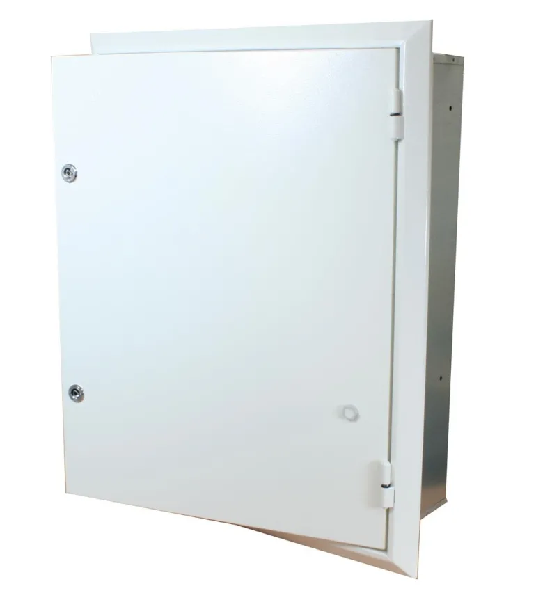 Mittarikaappi metallilevyä, uppoasennukseen. Potentiaalin tasauskisko (tyyppi PUS) toimitetaan vakiona PE-paneeliin kytkettynä kaikissa uppoasennettavissa kaapeissa.