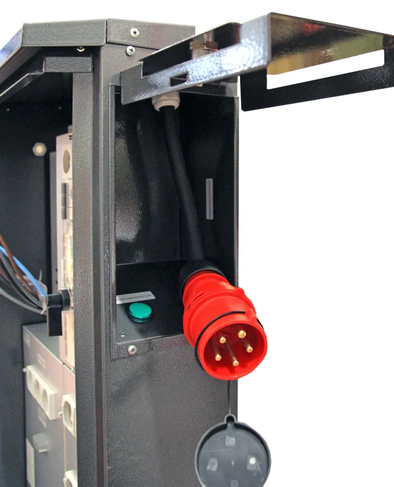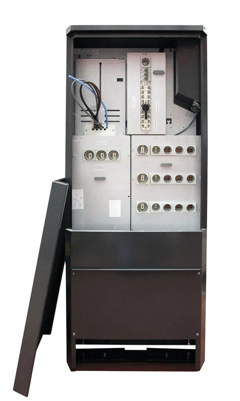 Mittauskeskus varavirralla ja diazed-sulakkeilla 63A ja 25A. Mittauskeskus jaolla, joka vakioversiossa on varustettu 63A mittaripaikalla ja varavirtakytkimellä, jossa sisäänotto 32A lukittavan luukun alla. Lähtevät ryhmät koostuvat yhdestä 63A 3-ivaiheryhmästä ja neljästä 25A 3-vaiheryhmästä. Lisävarusteena on sarja, joka muuttaa yhden 25A 3-vaiheisen ryhmän 63A:ksi. Kaikki ryhmät on kytketty päätelohkoihin. Mittauskeskuksessa on jännitteenpoisto ja kumikalvosta tehdyt kaapelin läpiviennit, jotta vältetään maan kosteus.