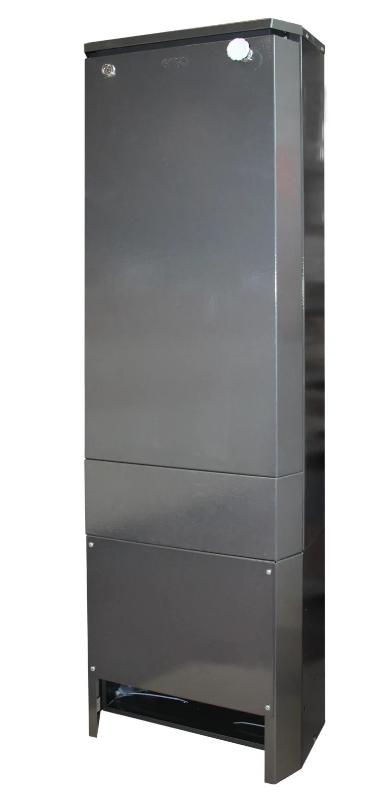 Mittauskeskus tyyppi C tyhjä. Mittauskeskus on varustettu asennuslevyllä ja sitä käytetään räätälöityjen laitteiden asennukseen. Kaapissa on jännitteenpoisto ja kumikalvosta tehdyt kaapelin läpiviennit, jotta vältetään maan kosteus.
