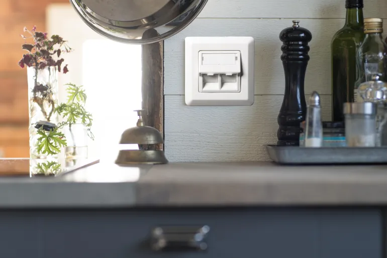 Modulaarinen pistorasia QC UTP C6 täydellisissä pistorasiapakkauksissa, jotka koostuvat suojaamattomasta modulaarisesta jakkiliittimestä TCS QuickConnect, kulmamallisesta keskilevystä ja kehyksestä. Helppo ja nopea liitäntä vaatii työkaluja.