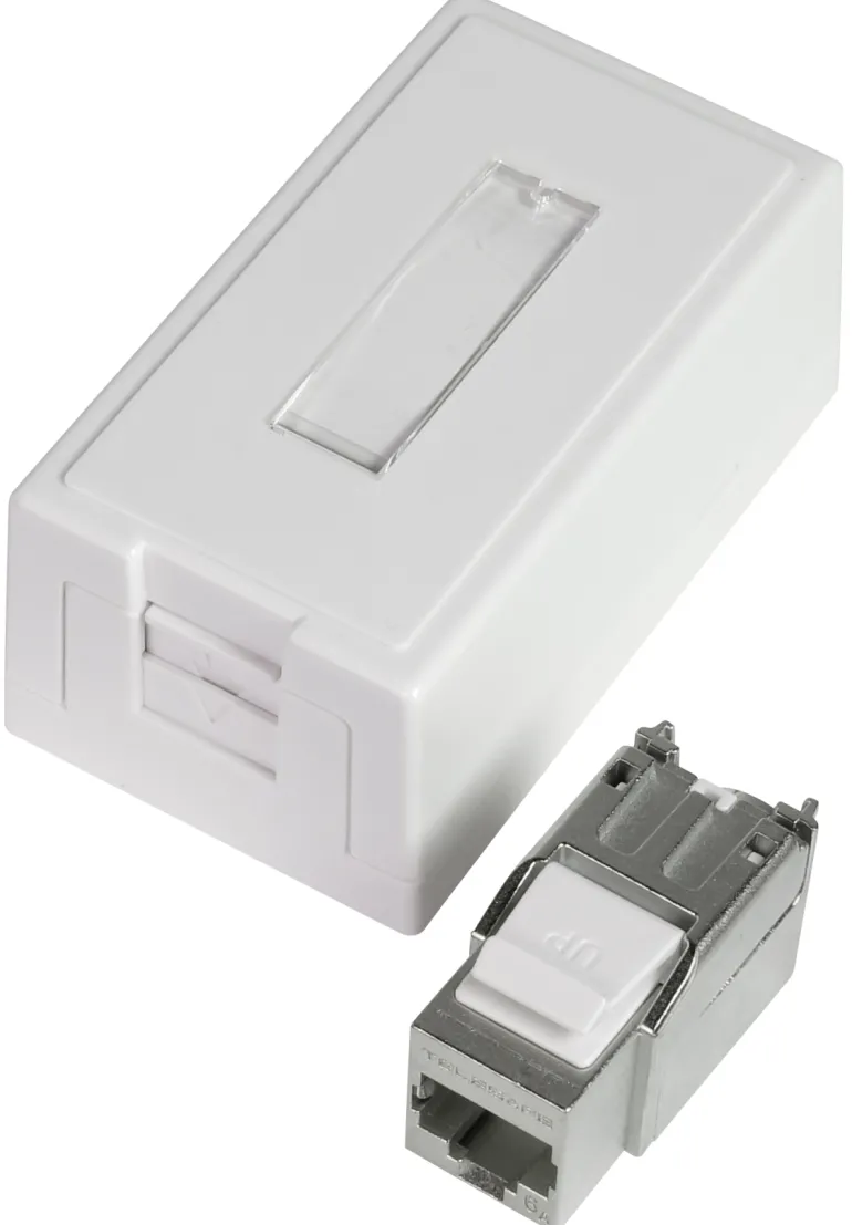 Modulaarinen pinta-asennettava pistorasia, jossa on luukku ja merkintäikkuna. 1×8 tai 2×8 STP C6A täydellisissä pistorasiapakkauksissa, jossa on suojattu modulaarinen jakkiliitin TCS QuickConnect. Helppo ja kätevä liitäntä työkaluilla. Voidaan yhdistää 568A:n tai 568B:n mukaisesti. Jakkiliitin napsautetaan suoraan pistorasiaan. Moduulinen pistorasia on kehitetty ja suunniteltu SS-EN 50173 -standardisarjan mukaisesti ja se kuuluu ELKO TCS -takuujärjestelmään.