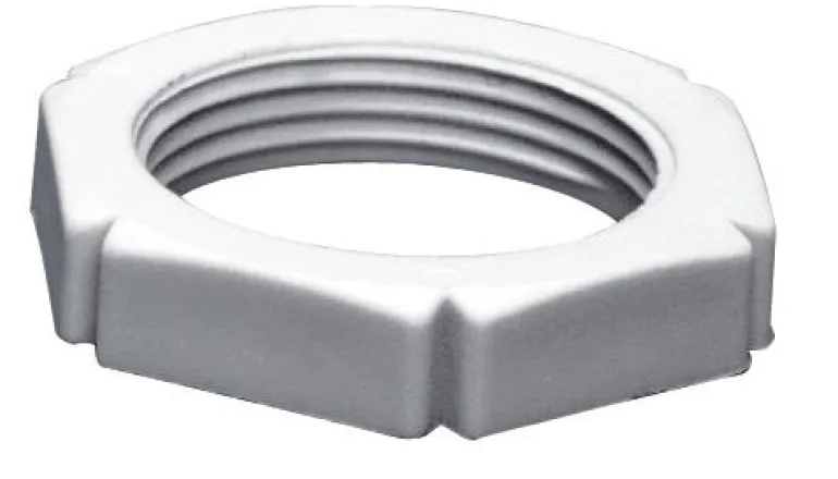 Vastamutteri harmaata lasikuituvahvistettua polyamidia, RAL 7035.