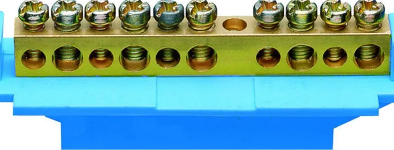 Messinkinen liitin N-liitäntään, sis. DIN-asennusalustan. Liitinlohkossa on viisi 10 mm²:n ja viisi 16 mm²:n liitäntää.