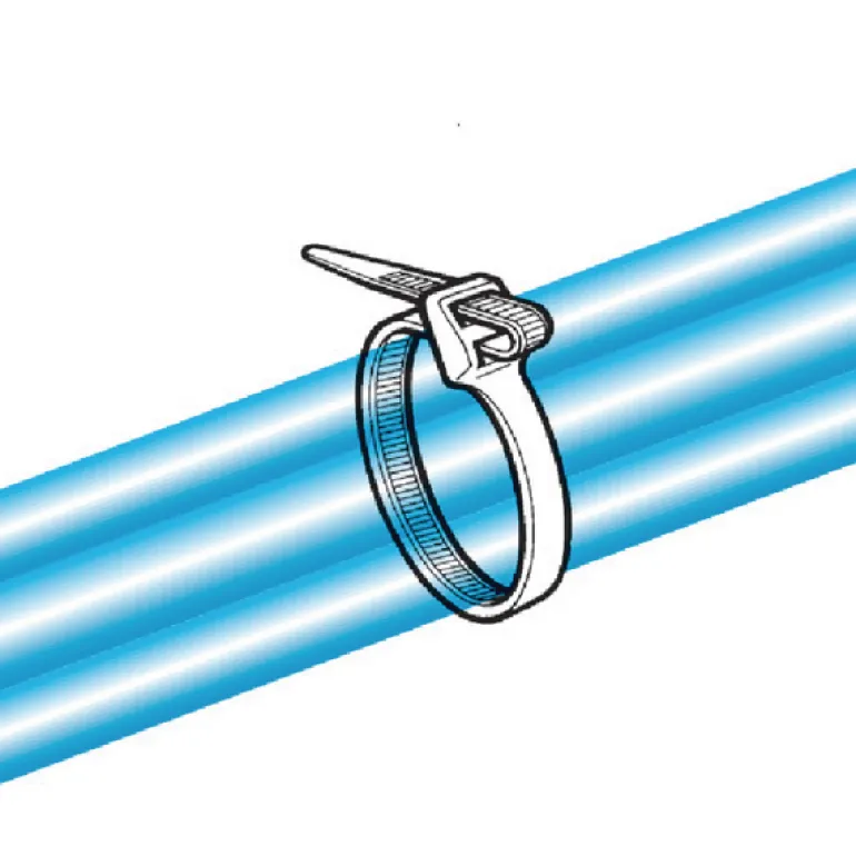 UV-stabilisoitu ulkokäyttöön suositeltu nippuside. Asennetaan käsin tai käyttämällä nippusidetyökalua.