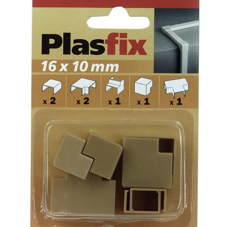 Sarja, jossa on Plasfix-kaapelikanavien liitos- ja kulmakappaleet. Pakkaus sisältää 7 erilaista mallia.