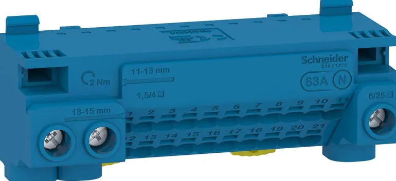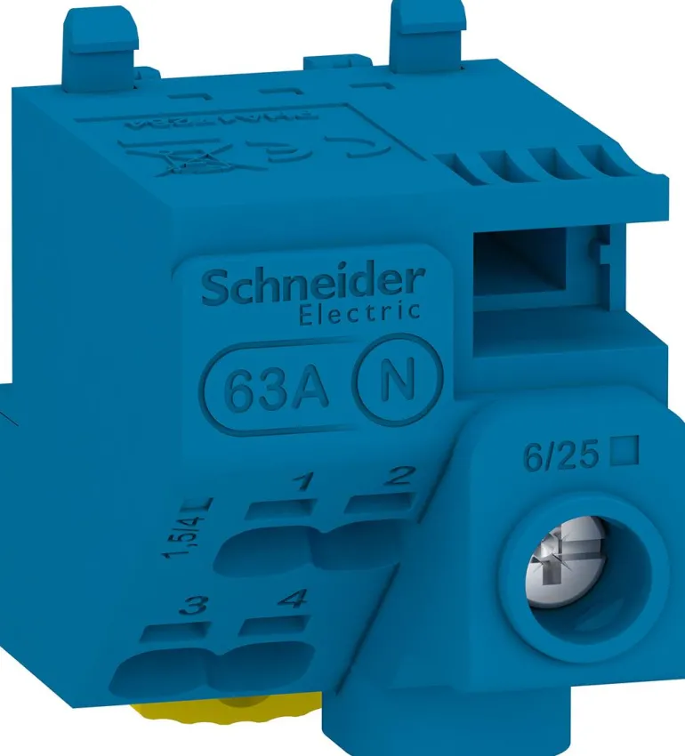 Schneider Resi9 CX LGYT1N14 on Resi9 CX:n ja Pragman koteloiden nollaliitin. Kiinnitin 2 lohkon väliseen liitäntään sisältyy pakkaukseen.