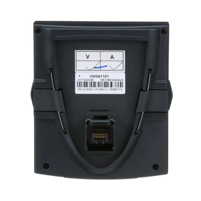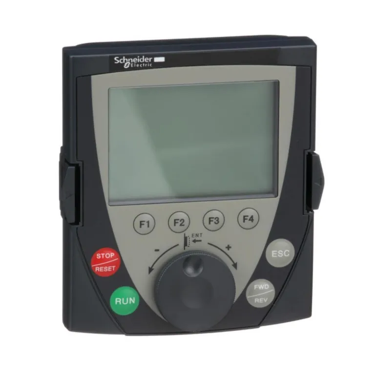 Ohjauspaneeli Altivar VW3A1101. Taajuusmuuttajiin on saatavana etäasennettava graafinen tai lcd-näyttö. Näytöt voidaan kiinnittää esimerkiksi kotelon kanteen taajuusmuuttajan ollessa sen sisällä.