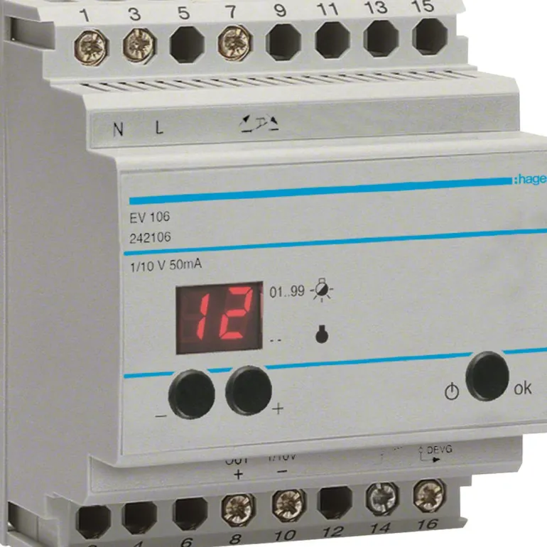 Ohjausyksikköä käytetään elektronisten liitäntälaitteiden valo-ohjaukseen analogisella ohjausjännitteellä 1–10 V (HF-laite) tai muuntajien valo-ohjaukseen analogisella ohjausjännitteellä 1–10 V. Asennettavaksi vakiokoteloihin. Ohjausyksikköön voi kytkeä vapaavalintaisen määrän painikkeita käyttöä varten. Itse asetettavat vähimmäis- ja enimmäisarvot. Kaksi tai kolme ohjelmoitavaa valaistusskenaariota. Nykyinen valaistustaso ilmoitetaan näytöllä, säädettävä himmennysnopeus. Näyttö ilmoittaa nykyisen valoisuusarvon ja ilmoittaa arvot