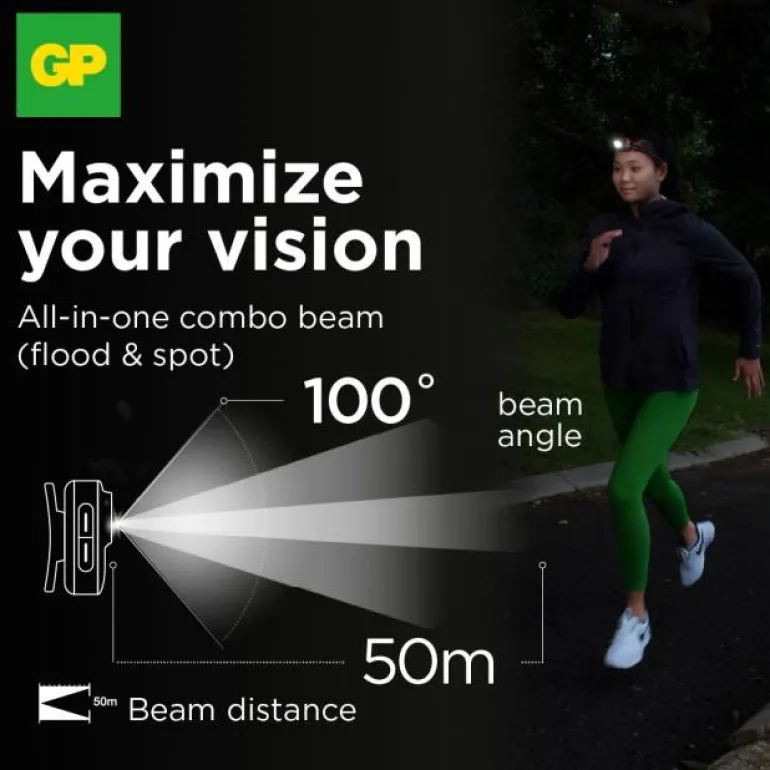Otsalampun päätä voidaan kääntää pystysuunnassa 60 astetta. Voit siis itse asettaa valonsäteen tarkasti haluamaasi suuntaan ilman, että sinun täytyy kääntää päätä ylös tai alas. PHR 16:n valovirta on 300 lm ja kantama jopa 50 metriä.
