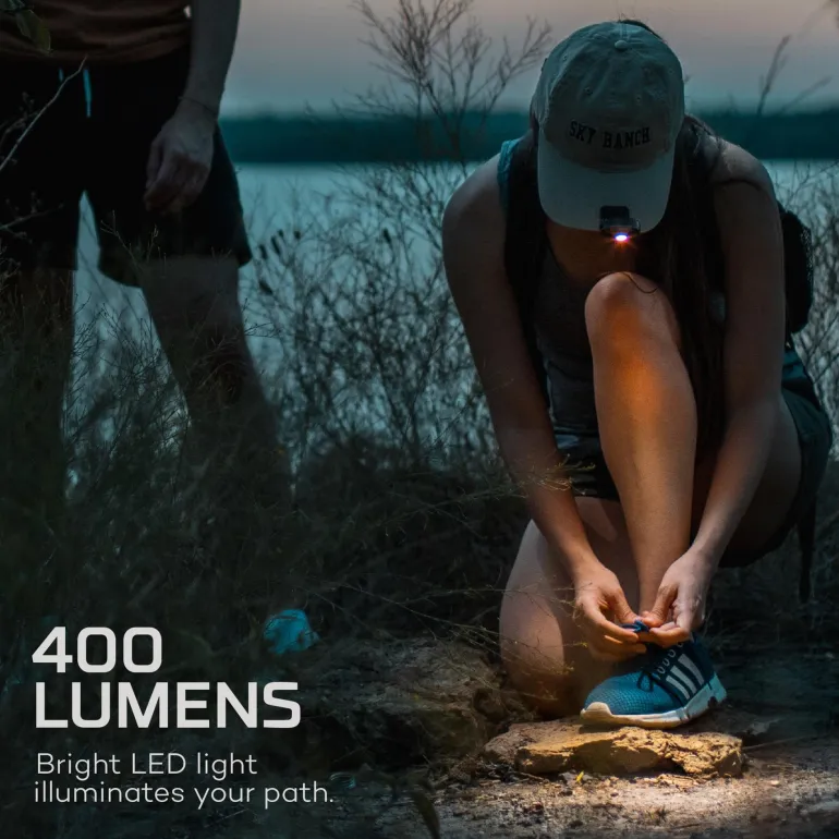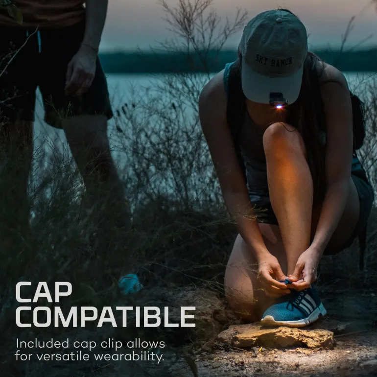 NEBO Mycro Headlight & Cap Light on ladattava, hands-free-mallinen 400 lumenin otsa-/lippalakkilamppu. Lampun voi takana olevan kiinnikkeen avulla kiinnittää helposti lippalakin lippaan.