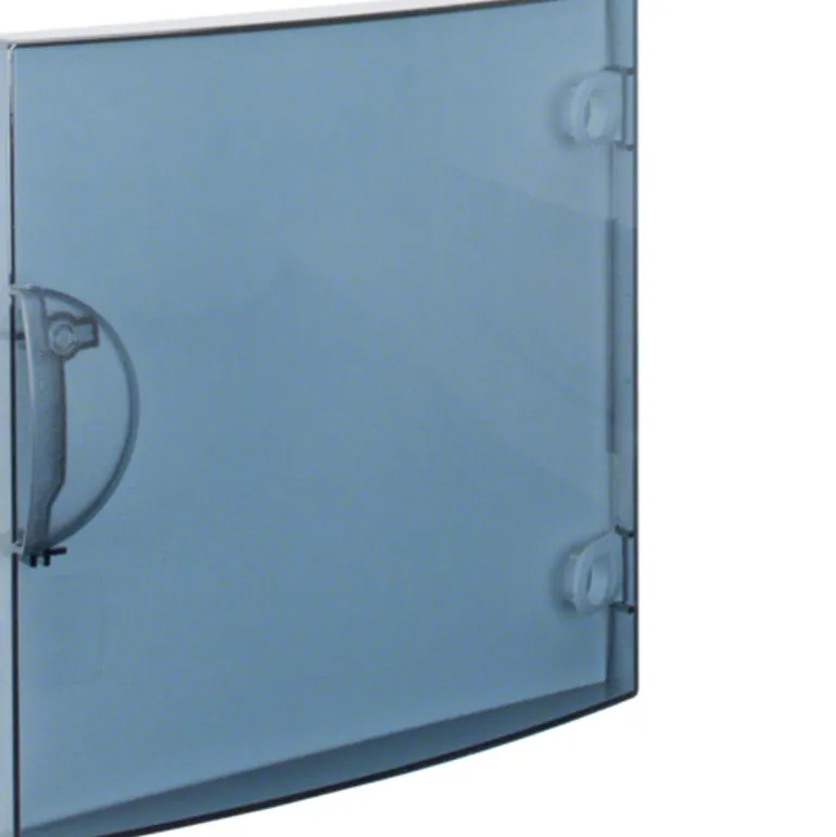 Hagerin kytkentäkaapin ovi. Sisältää saranat. Ripustetaan oikea- tai vasenkätiseksi pikakiinnikkeillä. Lukituspainike voidaan korvata avainlukolla.