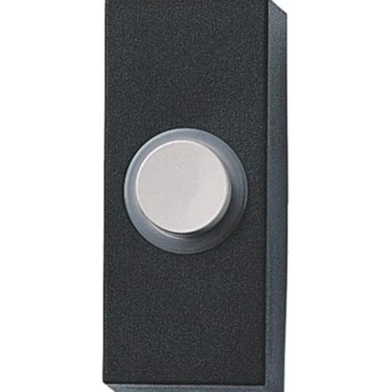 Musta muovinen ovikellopainike, jonka sisäänrakennettu valo valaisee painikkeen. Piilotetut kiinnitysruuvit. Lightspot-ovikellopainikkeen mitat ovat 60 x 26 x 24 mm (K x L x S).
