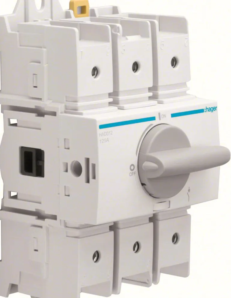 Modulaariset pääkytkimet voidaan asentaa kaikkiin vakiokoteloihin ja -kaappeihin. Kuormankytkin, jossa on riippumaton käsikäyttö ja näkyvä katkaisupiste. Kytkimet asennetaan DIN-kiskoon.