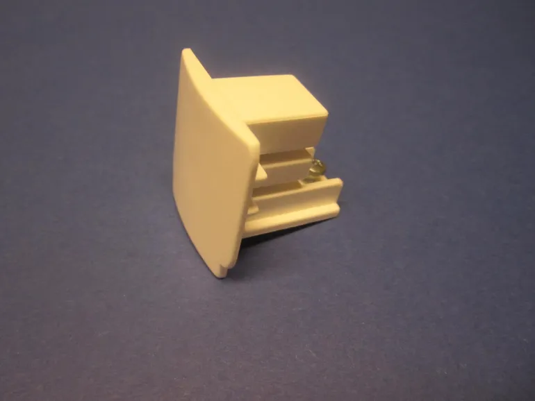 Valkoinen päätykappale kolmivaiheiseen kosketinkiskoon. Lisävaruste kolmivaiheiseen kiskoon GLOBAL Trac.