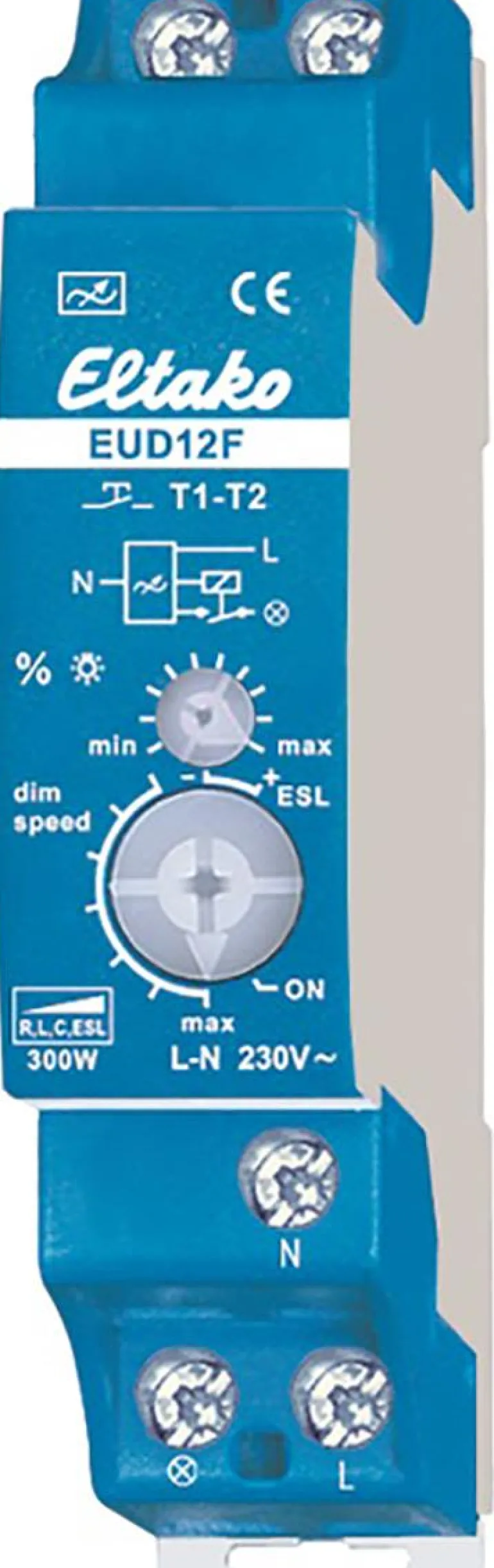 Yleishimmennin. EUD12F integroidulla releellä verkkovirran katkaisua varten. Power MOSFET jopa 300 W. Automaattinen kuormituksen tunnistus. Kulutus valmiustilassa vain 0,1 wattia. Vähimmäis- ja enimmäisvalotaso ja himmennysnopeus voidaan säätää. Lastenhuone- ja nukahdustoiminnoilla. Himmennin vaatii nollajohdon.