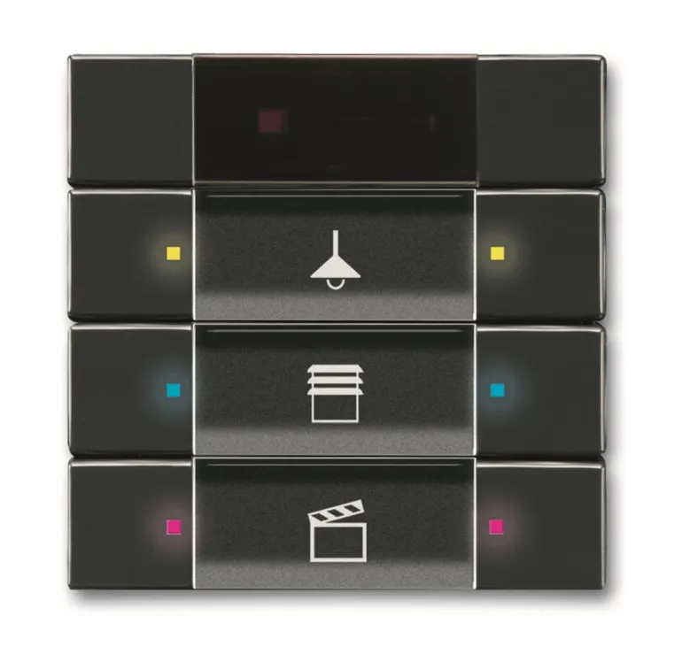 Monitoimipainike tekstikentällä ja RGB-diodeilla, jotka voidaan ohjelmoida näyttämään eri värejä ohjattavan kohteen mukaan. Käytetään väyläliitäntäyksikön 6120/12-101 kanssa, mutta toimii myös väyläliitäntäyksikön 6120/28 kanssa. Peitelevyt ja väyläliitäntäyksiköt tilattava erikseen.