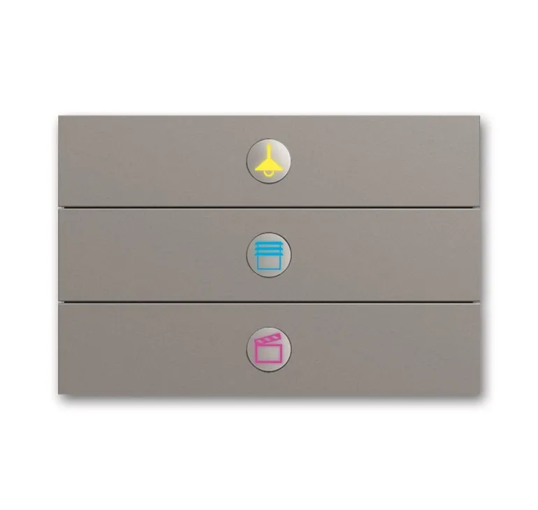 Vapaasti ohjelmoitava monitoimipainike. Voidaan asentaa 1-, 2- tai 3-osaiseen asennuslevyyn.