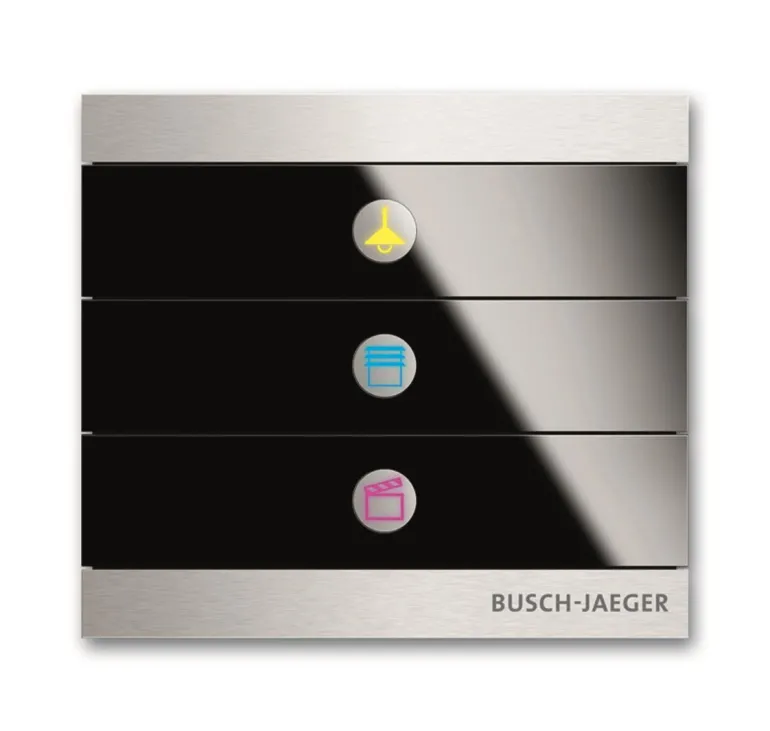 Vapaasti ohjelmoitava monitoimipainike. Voidaan asentaa 1-, 2- tai 3-osaiseen asennuslevyyn. Voidaan täydentää Busch-priOn-symboleilla, jotka osoittavat ohjelmoidun toiminnon.