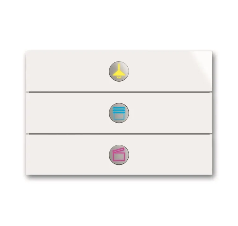 Vapaasti ohjelmoitava monitoimipainike. Voidaan asentaa 1-, 2- tai 3-osaiseen asennuslevyyn.