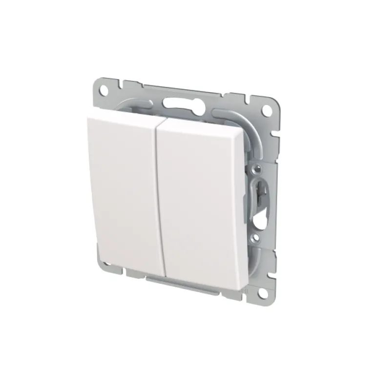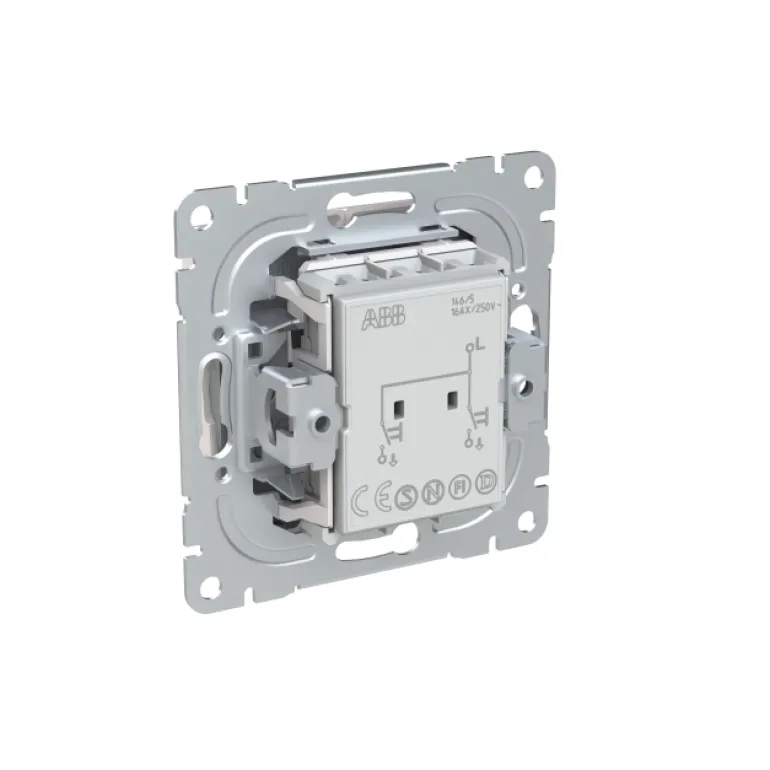 SAGA™-tuotesarjan 2-vipuinen painike jousikiinnitteisellä vivulla ja jousiliittimin. Liittimiin voi kytkeä max. 2 johdinta ja ne on hyväksytty ML- ja MK-johtimille. Valmistettu ABB:n nettonolla-tehtaassa Suomessa. Valkoinen RAL9003.