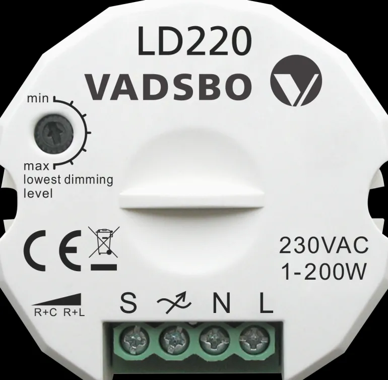 Yleispainehimmennin pienessä rasiassa seinään tai kojerasiaan asennettavaksi. Sopii erityisesti matalaenergia- ja LED-lamppujen himmennykseen. Toimii hyvin myös LED-toimilaitteiden ja hehkulamppujen himmennykseen.
