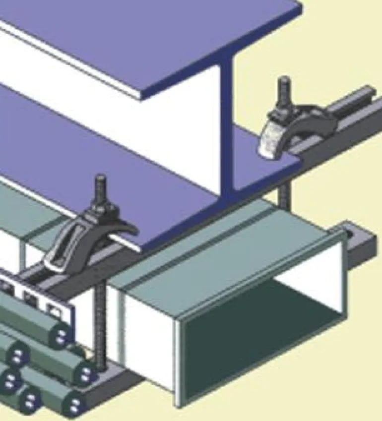 ERICO-CADDI-palkkikiinnike erittäin raskaisiin asennuksiin, kuten kaapelitikkaisiin ja valaisimiin. Vahvempi ankkurikisko.