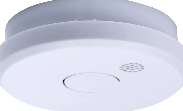 Optinen palovaroitin kotiin. Kun on aika vaihtaa paristo, varoitin lähettää lyhyitä signaaleja pitkäkestoisesti.