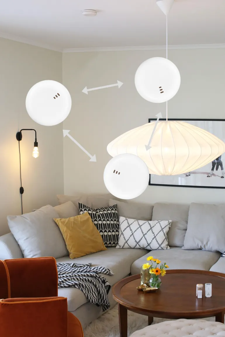 Paloilmaisin optisella savunilmaisimella, joka voidaan liittää langattomasti verkkoon rajoittamattomaan määrään muita laitteita. Kaikki kytketyt laitteet hälyttävät 3 sekunnin kuluessa, jos savunilmaisin havaitsee savun.