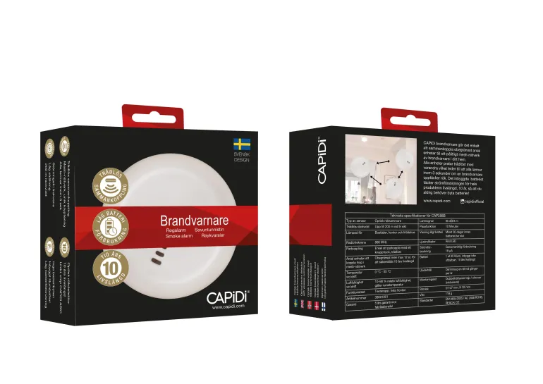 CAPiDi CAP388B on optisella savunilmaisimella varustettu palohälytin, joka voidaan liittää langattomasti verkon kautta rajoittamattomaan määrään muita laitteita. Kaikki kytketyt laitteet hälyttävät 3 sekunnin kuluessa, jos savunilmaisin havaitsee savun. Paristoja ei tarvitse vaihtaa, koska tuotteessa on sisäänrakennettu litiumparisto, joka kestää tuotteen koko käyttöiän (10 vuotta). CAPiDi CAP388B:n kantama on 200 metriä ja se varoittaa akun tyhjenemisestä.