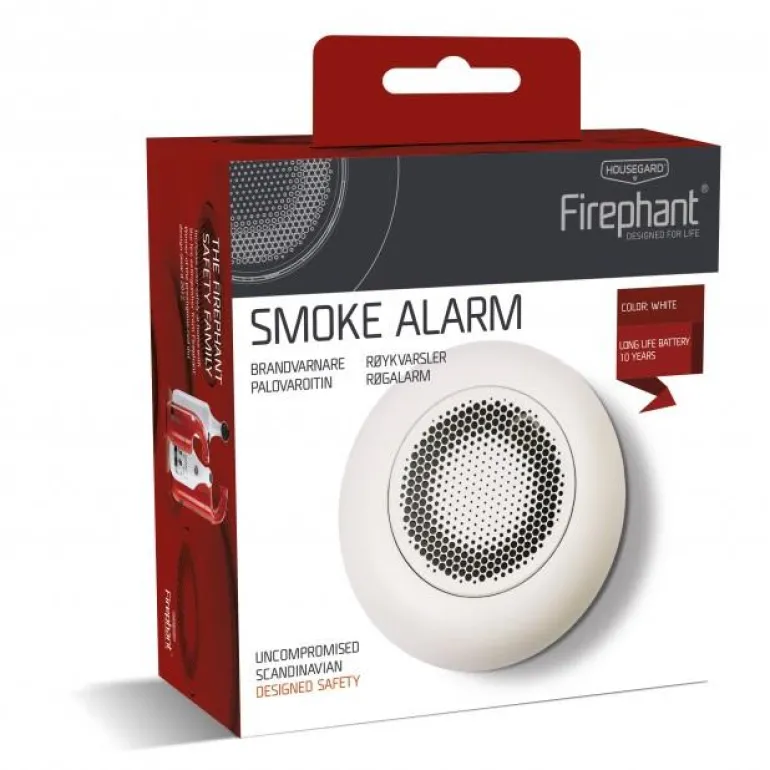Housegard Firephant SA800S on palovaroitin, jossa on sisäänrakennettu akku ja jonka käyttöikä on 10 vuotta. Varoittimen tyylikäs viimeistely ja matta kaareva kehys sulautuvat useimpiin ympäristöihin samalla kun ne välittävät turvallisuutta. Suurta metallipainiketta painamalla on helppo keskeyttää hälytys tai testata laitteen toimintakuntoa. Palovaroitin kalibroituu automaattisesti ja piirilevyn kullatut komponentit takaavat erittäin vakaan toiminnan ja luotettavuuden.