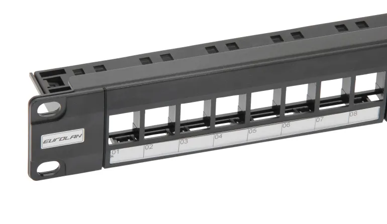 Eurolan 27B-00-24BL on 19-tuumainen patch-paneeli enintään 24 keystonejack-liittimelle vakiomallisella AMP-reikäkuviolla. Paneeli on valmistettu mustasta jauhemaalatusta teräslevystä, 1 HE. Mukana merkintälista, numerointi 1–24.