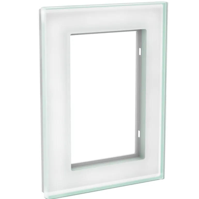 Lasinen Exxact-kehys 2-osaisten Solid-pistorasioiden uppoasennukseen, IP20. Pysty- tai vaaka-asennukseen. Kristallinvalkoinen