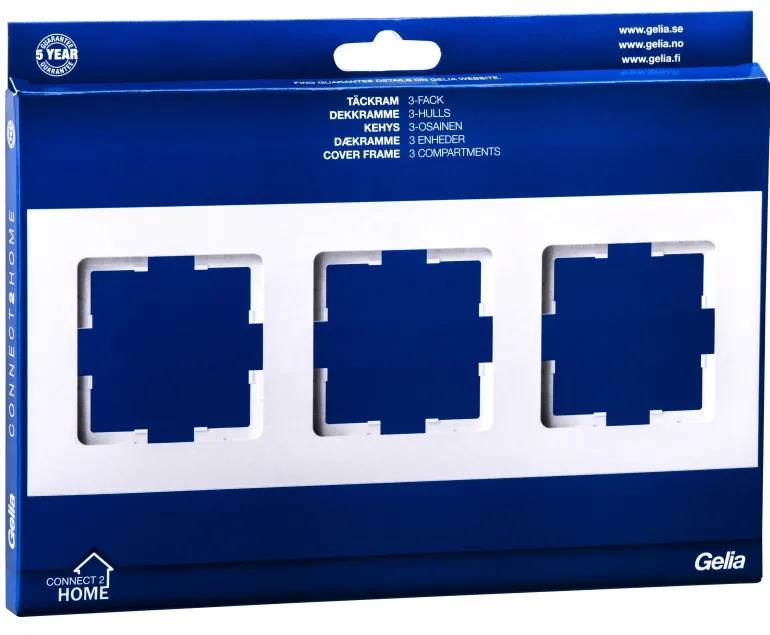 Peitekehys Connect 2 Home -asennussarjan upotettaville yksiköille. Moniosainen peitekehys yhdistelmäasennukseen, voidaan sijoittaa pystysuoraan tai vaakasuoraan. Jos olemassa oleva runko vaurioituu esimerkiksi korjaustöiden tai maalauksen yhteydessä, varaosana on saatavilla 3-paikkainen peitekehys, jolloin sinun ei tarvitse vaihtaa koko kokoonpanoa.