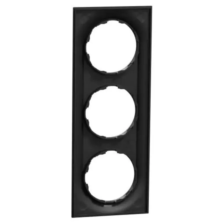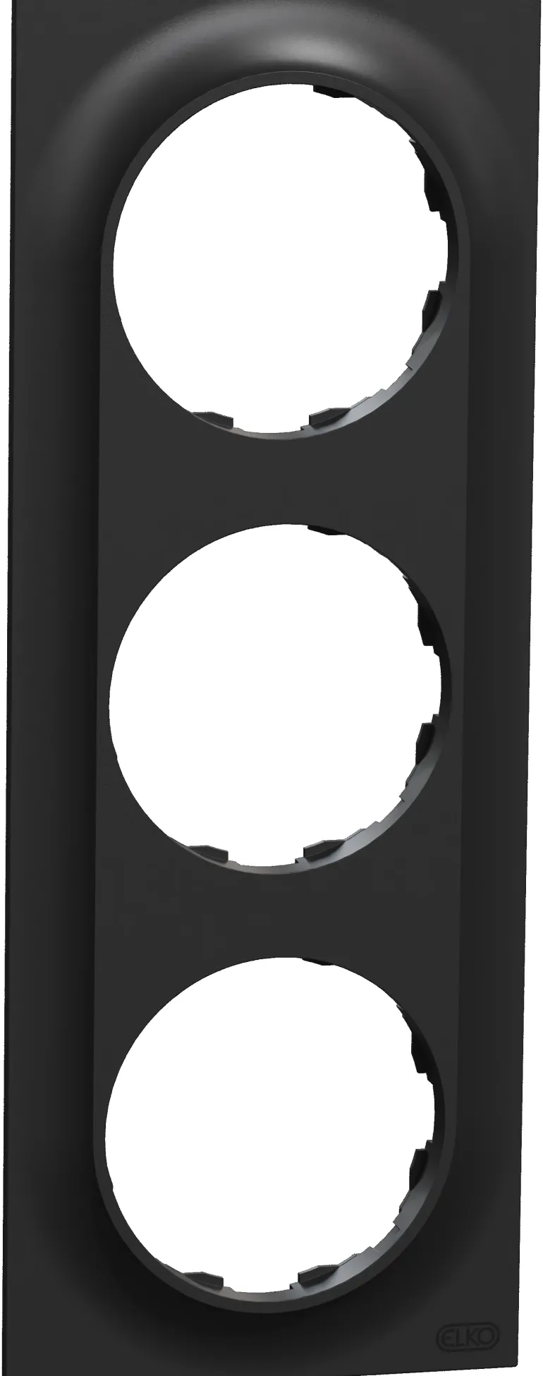 ELKO One 3-kehys ohuella ja tyylikkäällä muotoilulla. Soveltuu sekä pinta- että uppoasennukseen. Tuotteen mitat ovat (L) 87 mm x (K) 229 mm x (S) 10,5 mm. Se on valmistettu kierrätetystä polykarbonaatista (PC). Tuotteen väri on musta (RAL 9005) ja se on mattapintainen. Se saavuttaa IP21-suojaustason.
