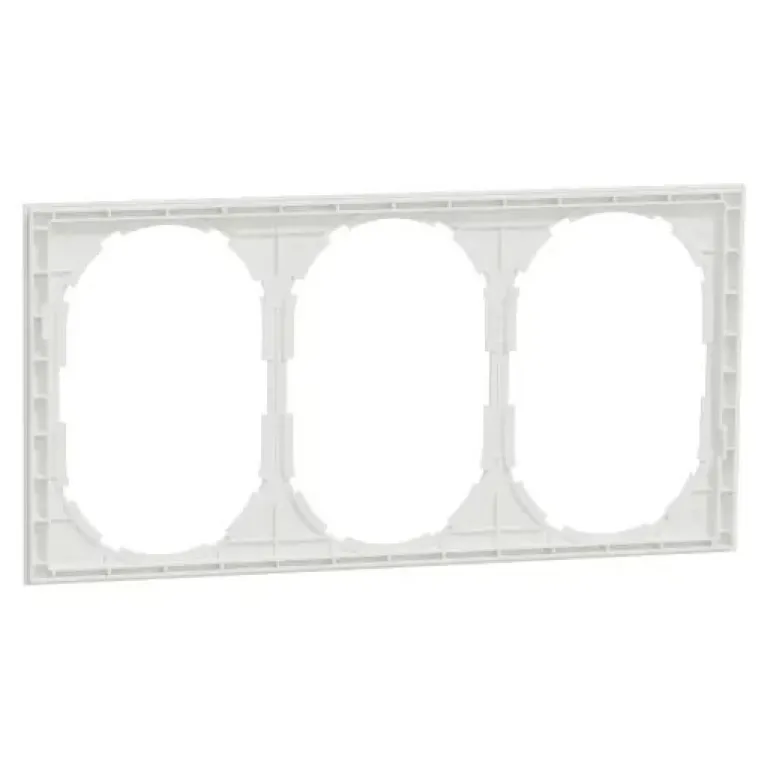ELKO One 3-kehys 2-pistorasialle valkoinen. Tuotteen mitat ovat (L) 229 mm x (K) 117 mm x (S) 5 mm. Se on valmistettu kierrätetystä polykarbonaatista (PC). Tuotteen väri on kirkkaan valkoinen (RAL 9003) ja se on mattapintainen. Se saavuttaa IP21-suojaustason.