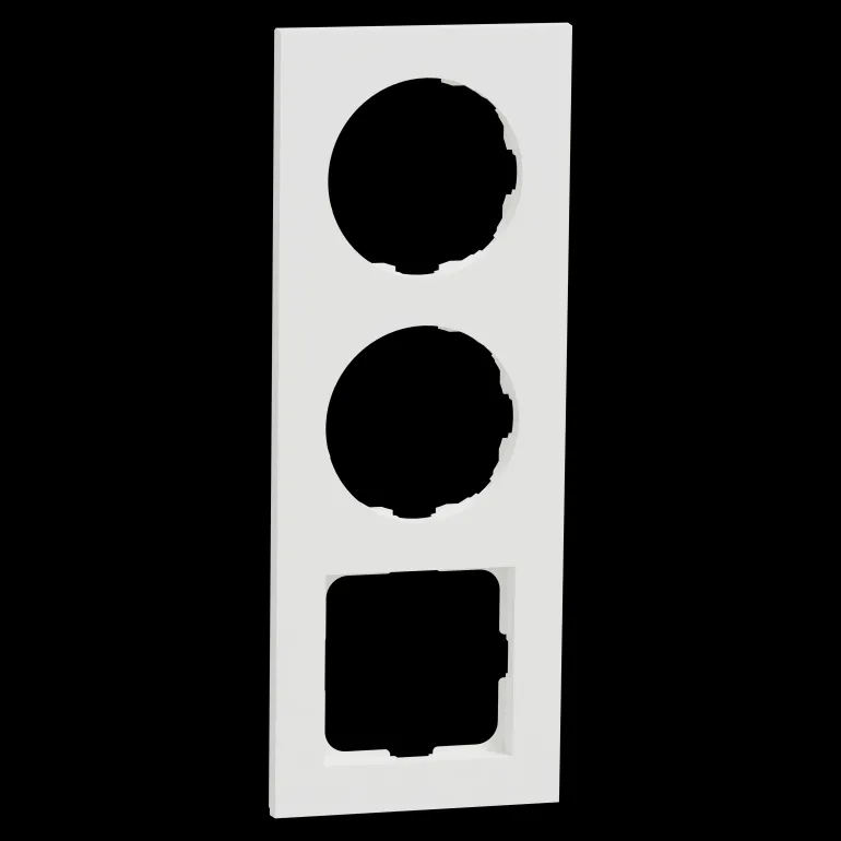 ELKO One 3-kehys, 1 kpl 56×56 aukko valkoinen. ELKO One -toimintojen pyöreän kahden aukon lisäksi kehyksessä on yksi neliöaukko, joka sopii 56 x 56 mm:n keskiölevyllisille tuotteille ELKO RS- ja ELKO Plus -tarjoamasta.