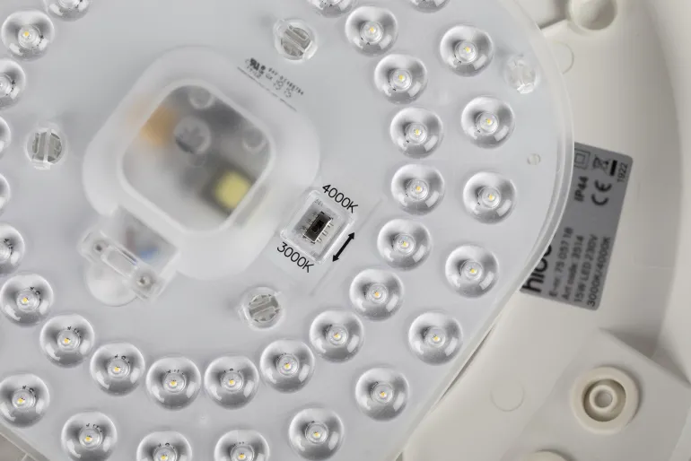 Helposti asennettava perusplafondi, LED-moduuli integroidulla liitäntälaitteella ja valinnainen värilämpötila DIP-kytkimellä (3000K tai 4000K).