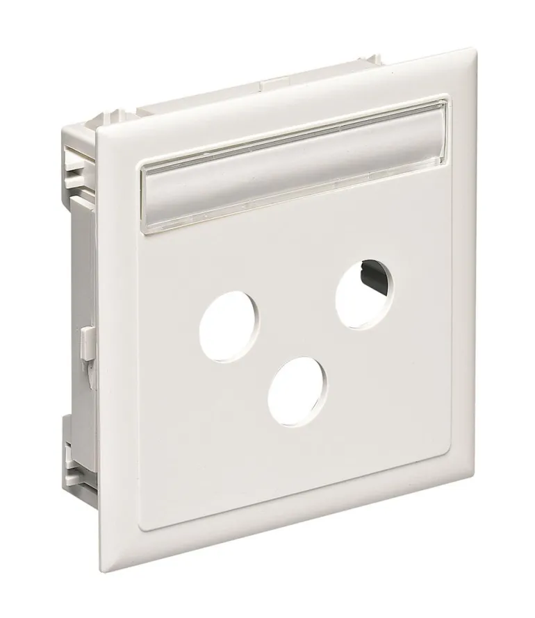 Kansi, jossa reiät radio-, TV- ja satelliittiliitännöille. Sovitinkehys ruuvivälillä c/c 60 tavallisille radio-, TV- ja satelliittiliitännöille.