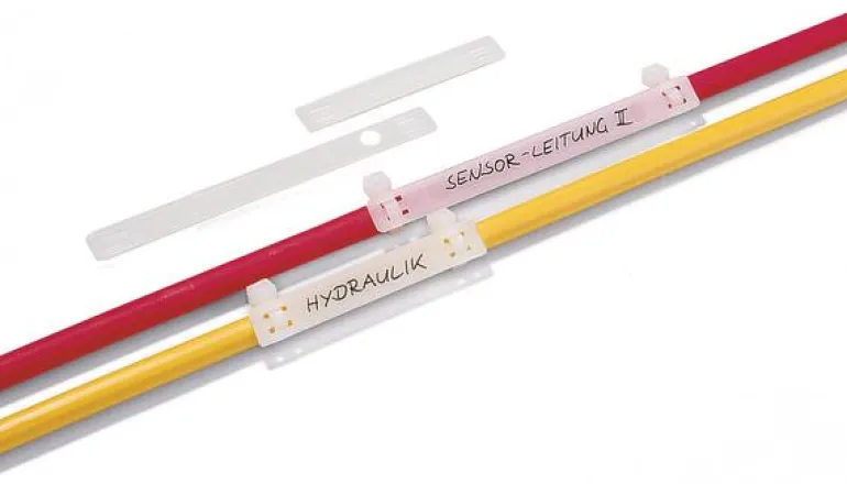 Pidike kaapelimerkintää varten HO85. AT2-merkintälevyyn sopii 8 HO85-johdinmerkkiä, AT3-merkintälevvyyn 14 HO85-johdinmerkkiä.