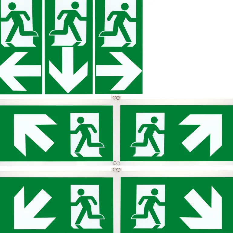 Piktogrammisarja Exiway Smartexit -valaisimeen. Näkymisetäisyys on 26 m.
