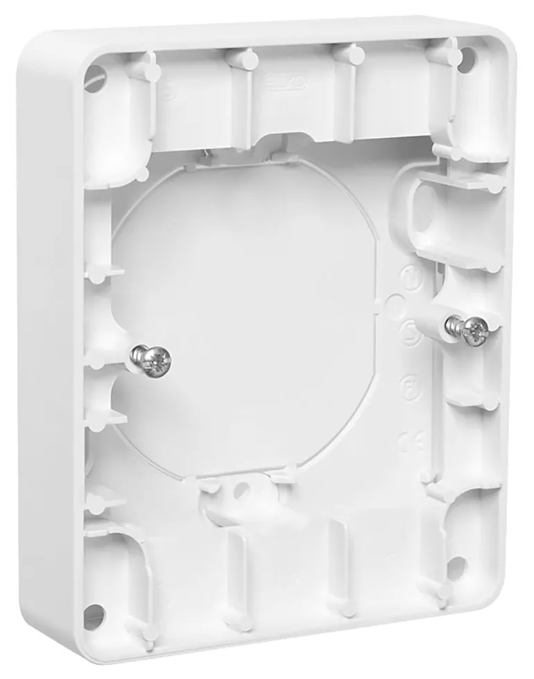 Pintakojerasia upotettavalle 2-osaiselle ruuviliitännällä varustetulle pistorasialle pinta-asennukseen. Toimitetaan täydellisenä pohjalevyn kanssa.