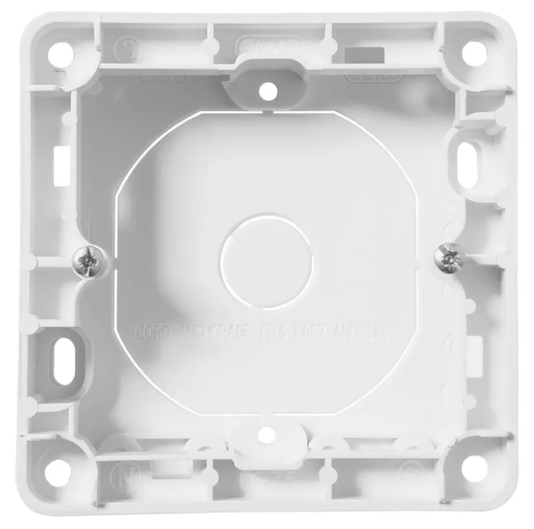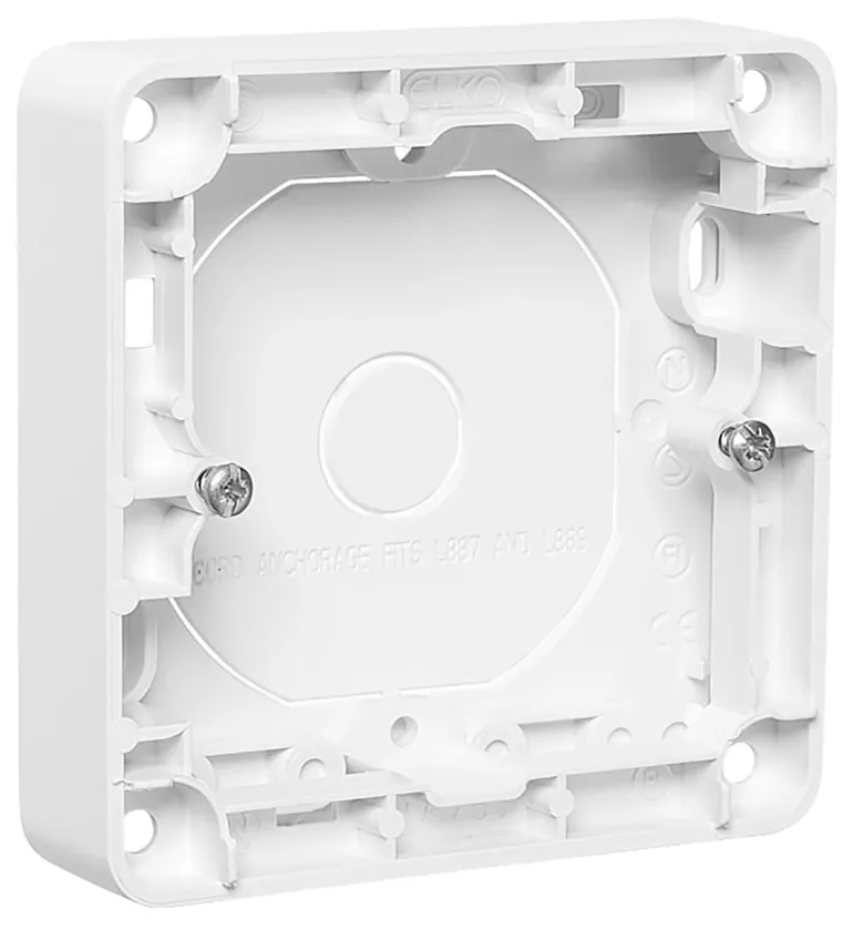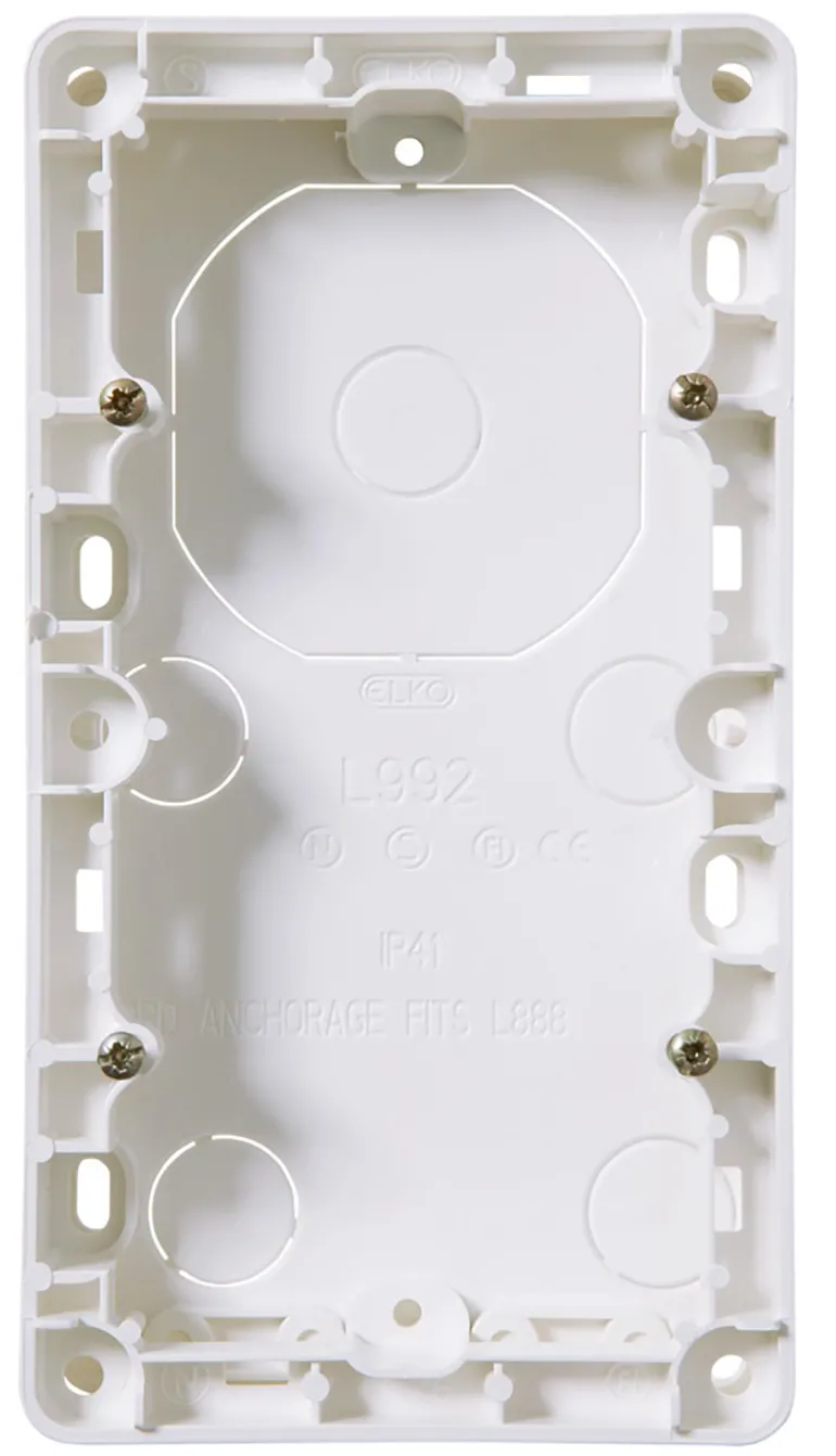 Elko EKO30187 on pintakojerasia Elkon RS-asennuskalusteiden pinta-asennukseen. Rasian syvyys 20 mm ja ruuvien kiinnitysväli 60 mm. Voidaan asentaa kojerasiaan olemassa olevan asennuksen laajentamiseksi, kaapelin ulostulon yli tai kaapelilla syöttämiseen sivulta. Käytä tarvittaessa vedonpoistonysää (ei sisälly toimitukseen). Sopii ruuviliitännällä varustettuihin pistorasioihin.