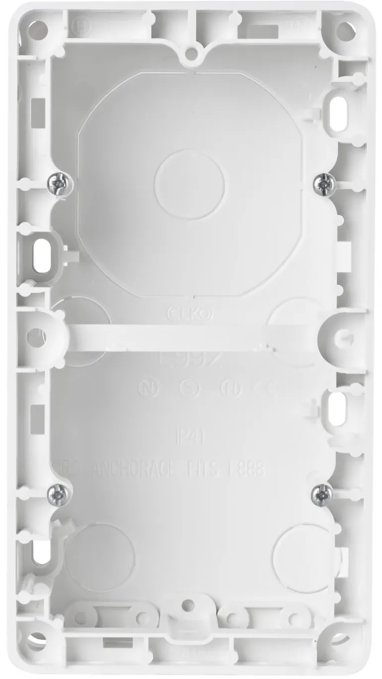 Elko EKO30191 on pintakojerasia Elkon RS-asennuskalusteiden pinta-asennukseen. Ruuvien kiinnitysväli 60 mm. Voidaan asentaa kojerasiaan olemassa olevan asennuksen laajentamiseksi, kaapelin ulostulon yli tai kaapelilla syöttämiseen sivulta. Käytä tarvittaessa vedonpoistonysää (ei sisälly toimitukseen). Syvyys 35 mm, rasia sopii himmentimen kaltaisille sähkötuotteille.