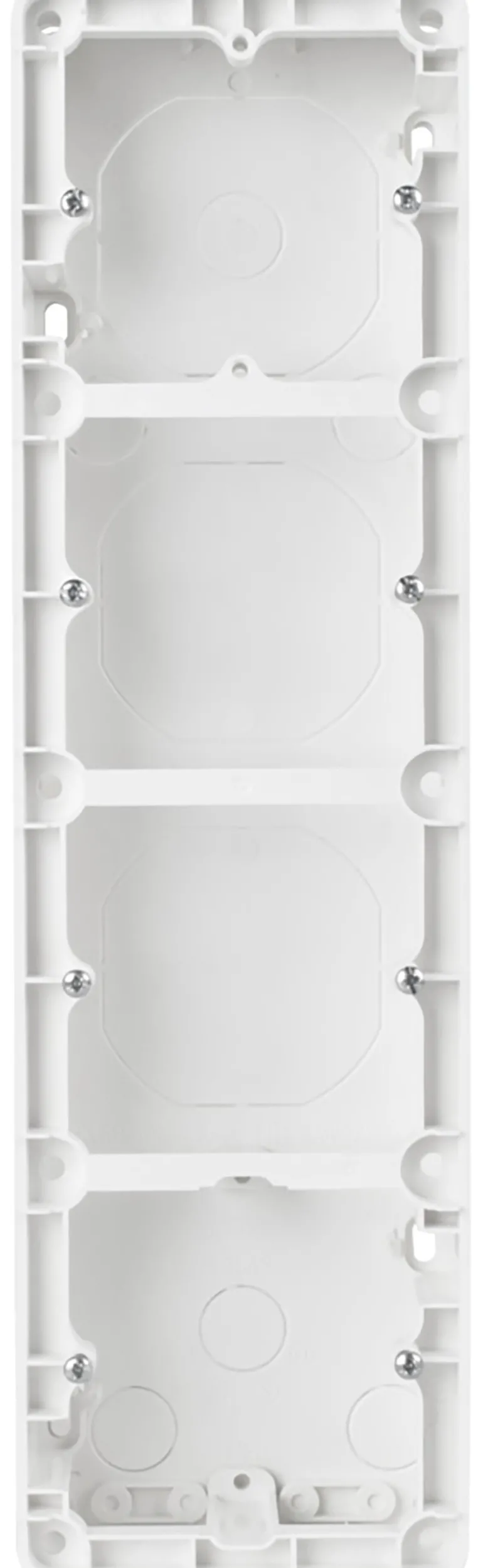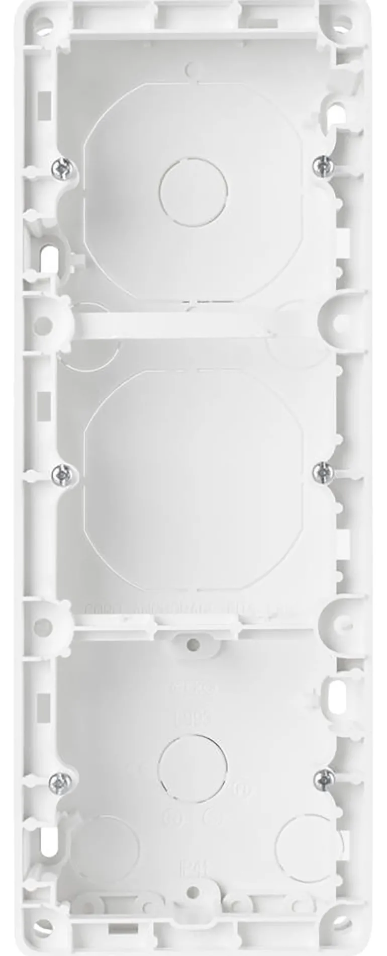 Pintakojerasia Elkon upotettavien RS-asennuskalusteiden pinta-asennukseen. Ruuvien kiinnitysväli 60 mm.