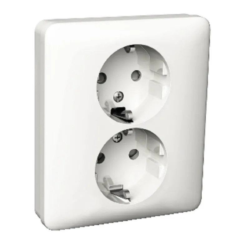 Schneider Exxact- 2-osainen pistorasia. 2-pistorasia kytketty 250V 1-vaihesyötölle. Toinen ulostulo on jatkuvalla jännitteellä, toista ulostuloa ohjataan