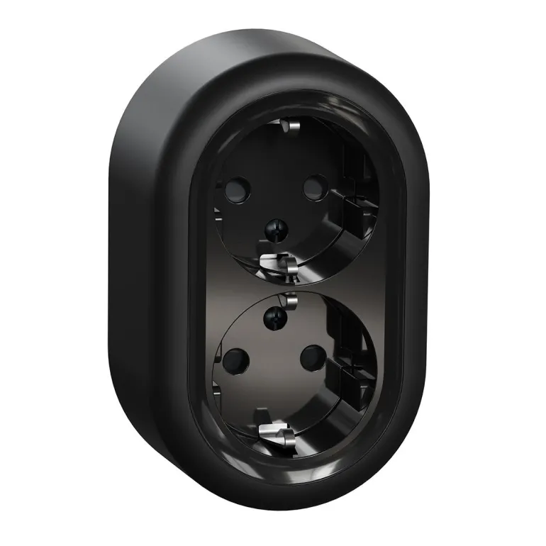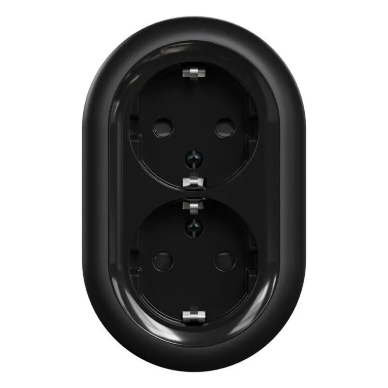Renova pinta-asennettava 2-pistorasia, 16 A /250 V. Haaroitettavissa pistorasioissa ei lisäliittimiä. Kotelointiluokan IP21 mukaisessa asennuksessa johto tuodaan kojeelle sivulta tai alhaalta. IP20 ilman muoviosia.