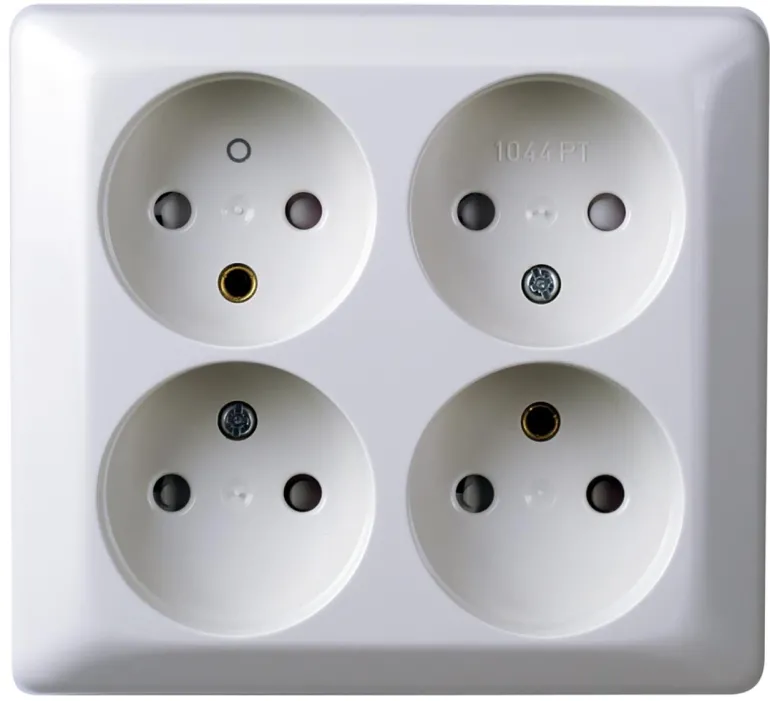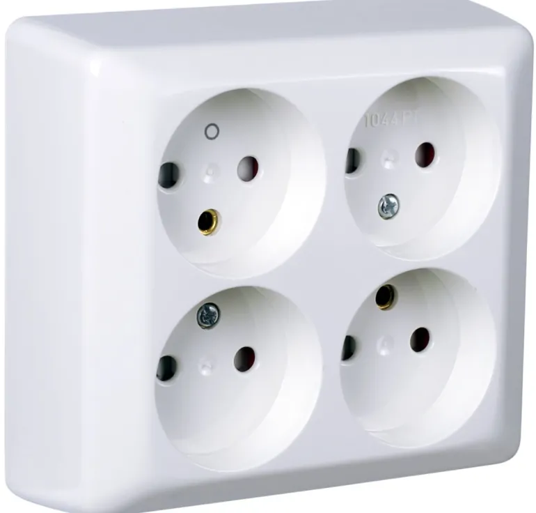 Pinta-asennettava 4-osainen pistorasia maadoittamaton. Valmistettu halogeenittomasta kestomuovista.