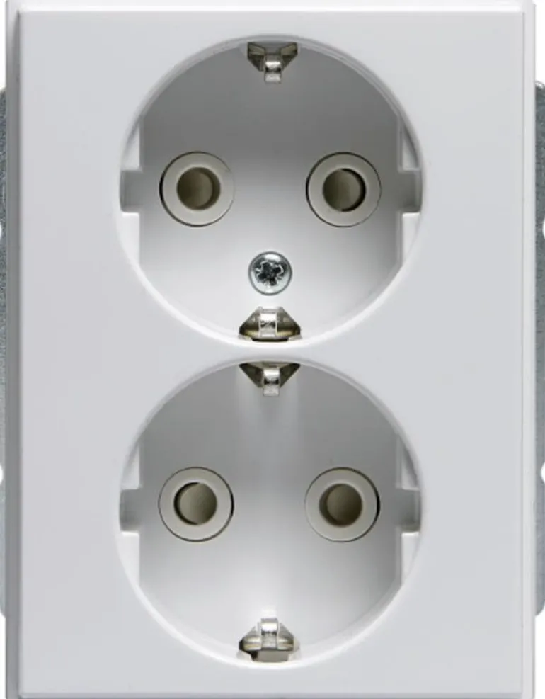 Uppoasennettava pistorasia. Pistorasiassa on liittimet kutakin kosketinta kohden ja niihin voi kytkeä max. 4 johtoa (haaroitusmahdollisuus). Liittimet on hyväksytty ML- ja MK-johtimille. Ei potentiaalivapaita liittimiä. Pistorasian runko on kosketussuojainen ilman peitelevyä.